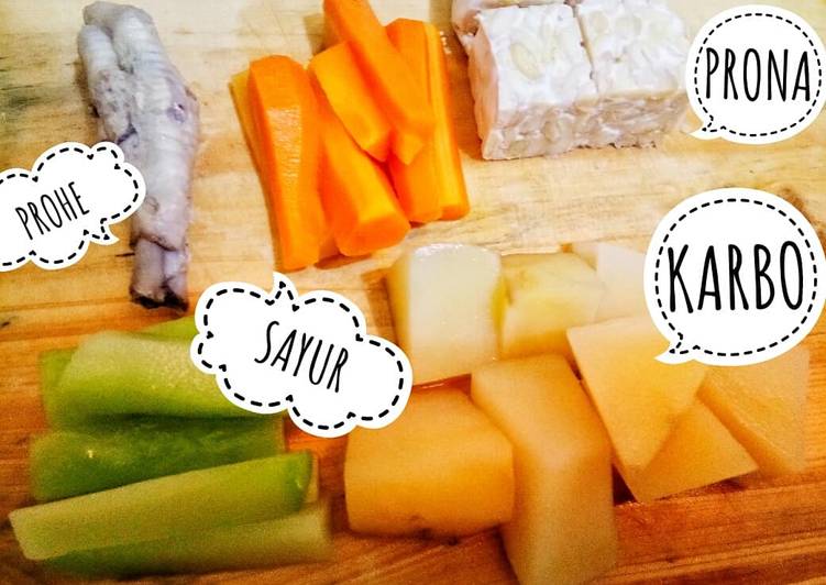 12 bawang bombay cincang 1 siung bawang merah cincang 1 siung bawang putih cincang 1 butir telur ayam. Semua bahannya aku kira-kirakan saja. Karbo 1 sdm nasi putih Prohe Ikan tongkoldirebus dulu Sayur Wortel parut seledri Prona kacang panjang Ub evoo Bumbu aromatik daun jerukduo bawang.