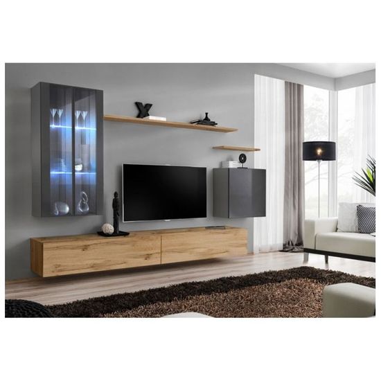 Ensemble Mural Switch Xii 2 Vitrines Led 2 Bancs Tv 1 Vitrine Carree 3 Etageres Bois Et Graphite Modele 2 Achat Vente Meuble Tv Mural Ensemble Mural Switch Xii Soldes Sur Cdiscount Des Le 20 Janvier Cdiscount