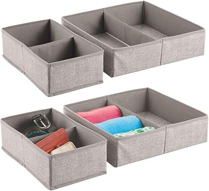 Mdesign Boite De Rangement Pour Armoires Ou Tiroirs Lot De 4 Panier De Rangement Ideal Pour Vetements Linges Etc Bac De Rangement Flexible Avec 8 Compartiments Gris Amazon Fr Cuisine Maison